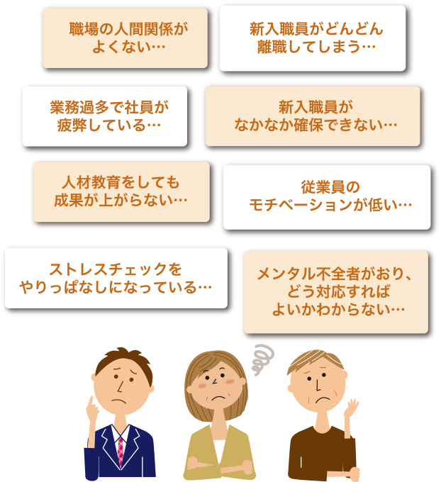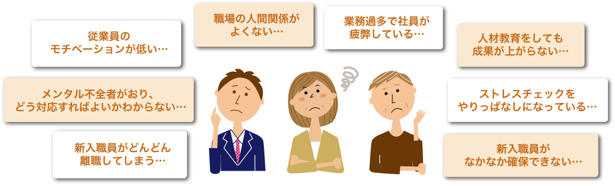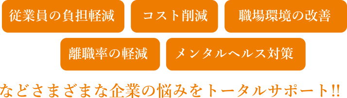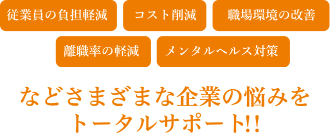 悩みを抱えながら仕事を続ければ、ミスや重大事故の発生、生産性の低下、離職者の増大を招きます。カウンセラーによるカウンセリングを受けると「話を聴いてもらえた!」という満足感と同時に内省を深めることにより、今直面している問題に前向きに動きだせるようになります。メンタルヘルスケアサポートの提供は、企業の生産性、企業ブランドの向上、組織の持続可能性を高めことができ、企業における社会的責任の1つです。 |